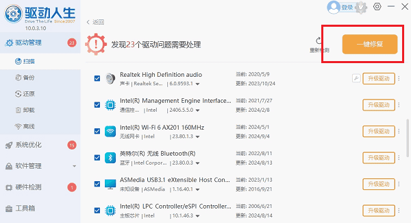 1. 安装并打开“驱动人生”切换到-驱动管理栏目,点击“立即扫描”选项,扫描当前所有设备驱动状态。
